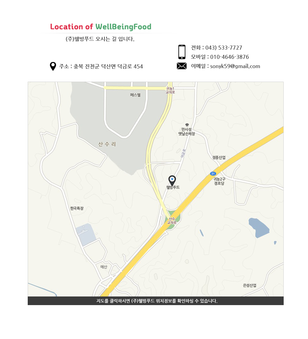 (주)웰빙푸드010-4646-3876 충북 진천군 덕산면 덕금로 454